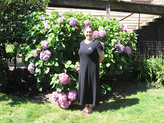 I don't like to always be behind the camera so I posed with some early hydrangeas. My *favourite* flowers.